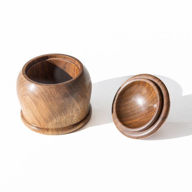 Boks Ø x cm, H y cm. Egnet for ring, smykker etc. Danish oil, polert (Ringbox etc.)